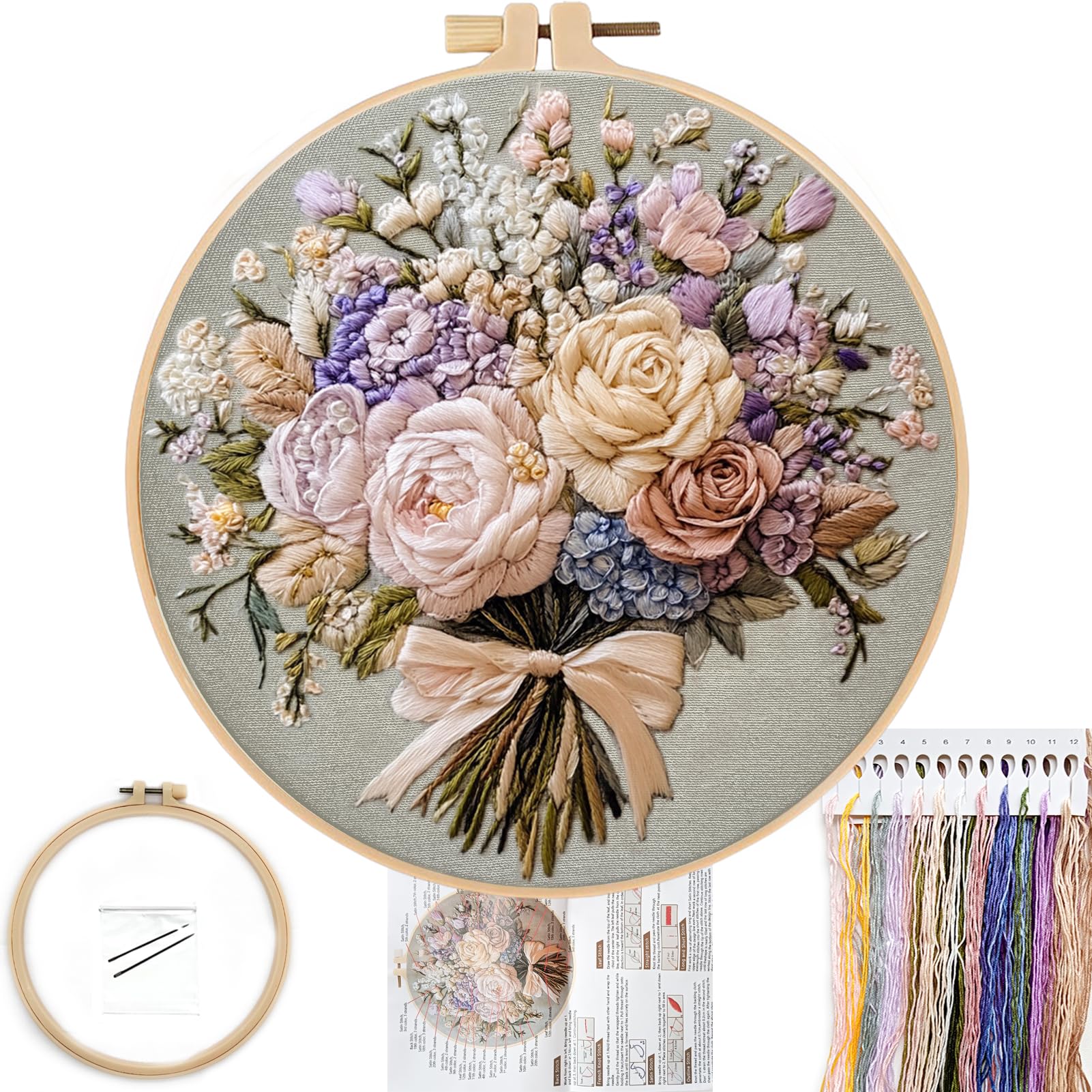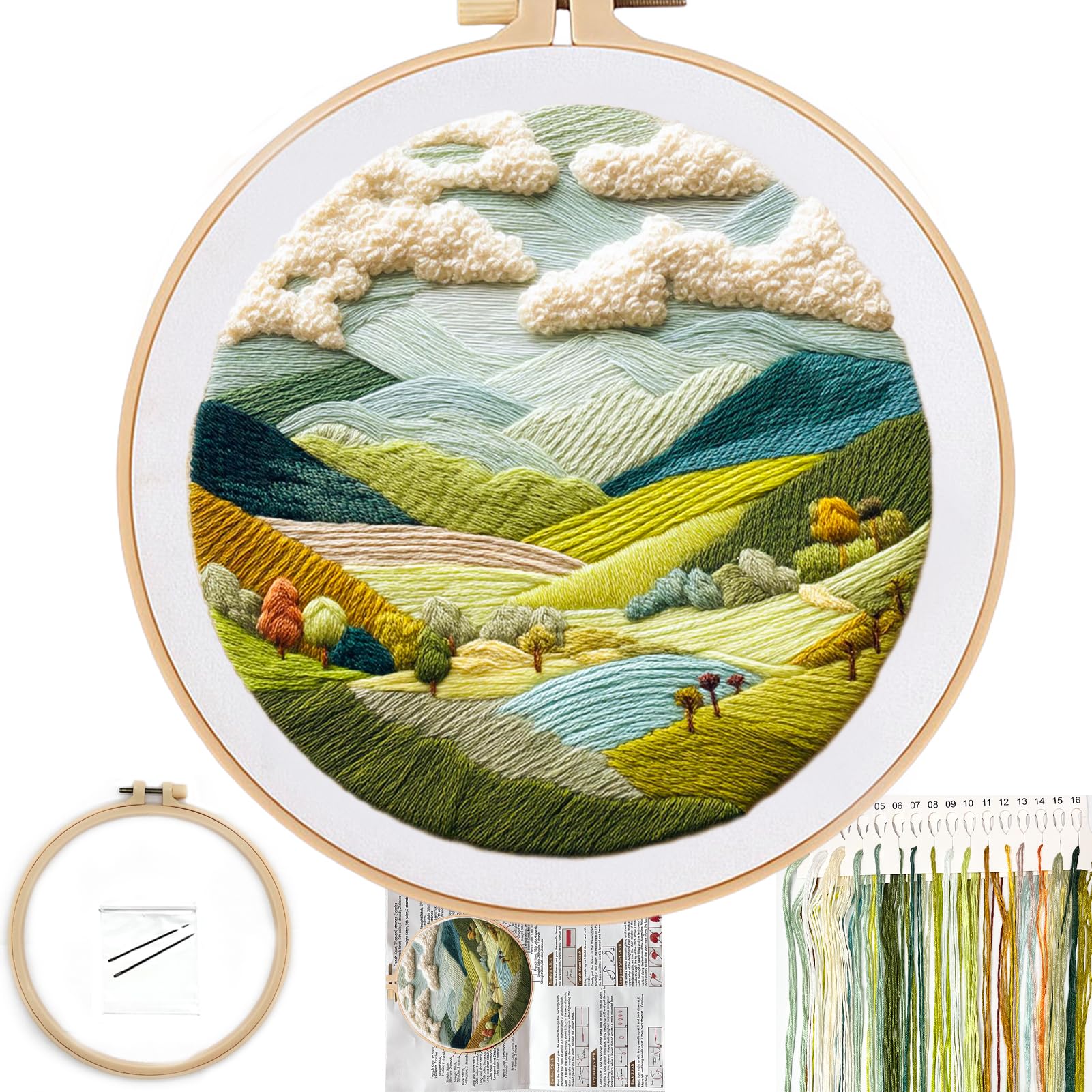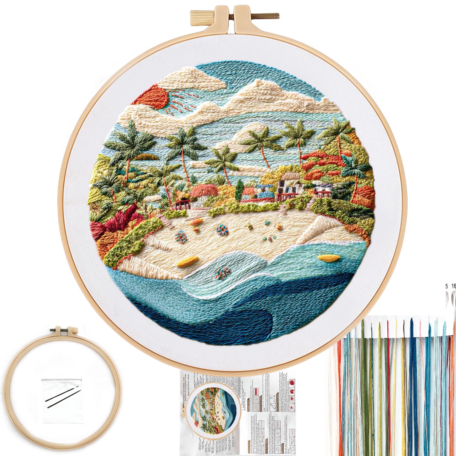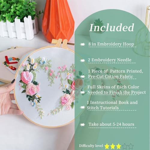 - 【Contains】Each kit contains 6-strand carded floss, needles, 1 of pre-marked canvas fabrics, 1 of 8'' hoop and a instruction.