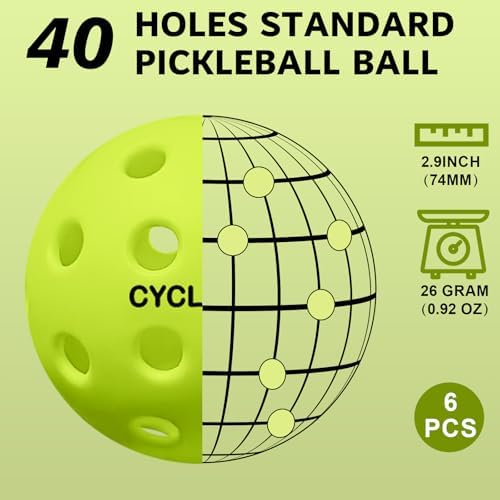 cyclotron 6-Pack Premium Pickleball Balls - USAP Approved, 40 Holes Outdoor/Indoor Pickle Balls with Bag, Perfectly Balanced, High Bounce True Flight, Pickle Ball for Tournament Play
