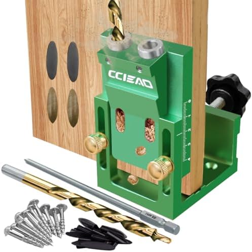 - 【Aluminum Alloy】: The pocket hole jig kit is made of hard aluminum alloy that is both rugged and lightweight to carry, the green anodized finish provides excellent finish and corrosion resistance. Drill holes are inlaid with steel sleeves, so you don't have to worry about wear and tear during the drilling process and loss of precision.