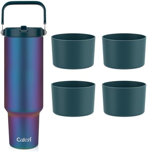 Cafezi 50 oz Insulated Tumbler with 4 Pack Silicone Boot for Tumblers with a 2.88 to 3.15 inch (73-80 mm) base