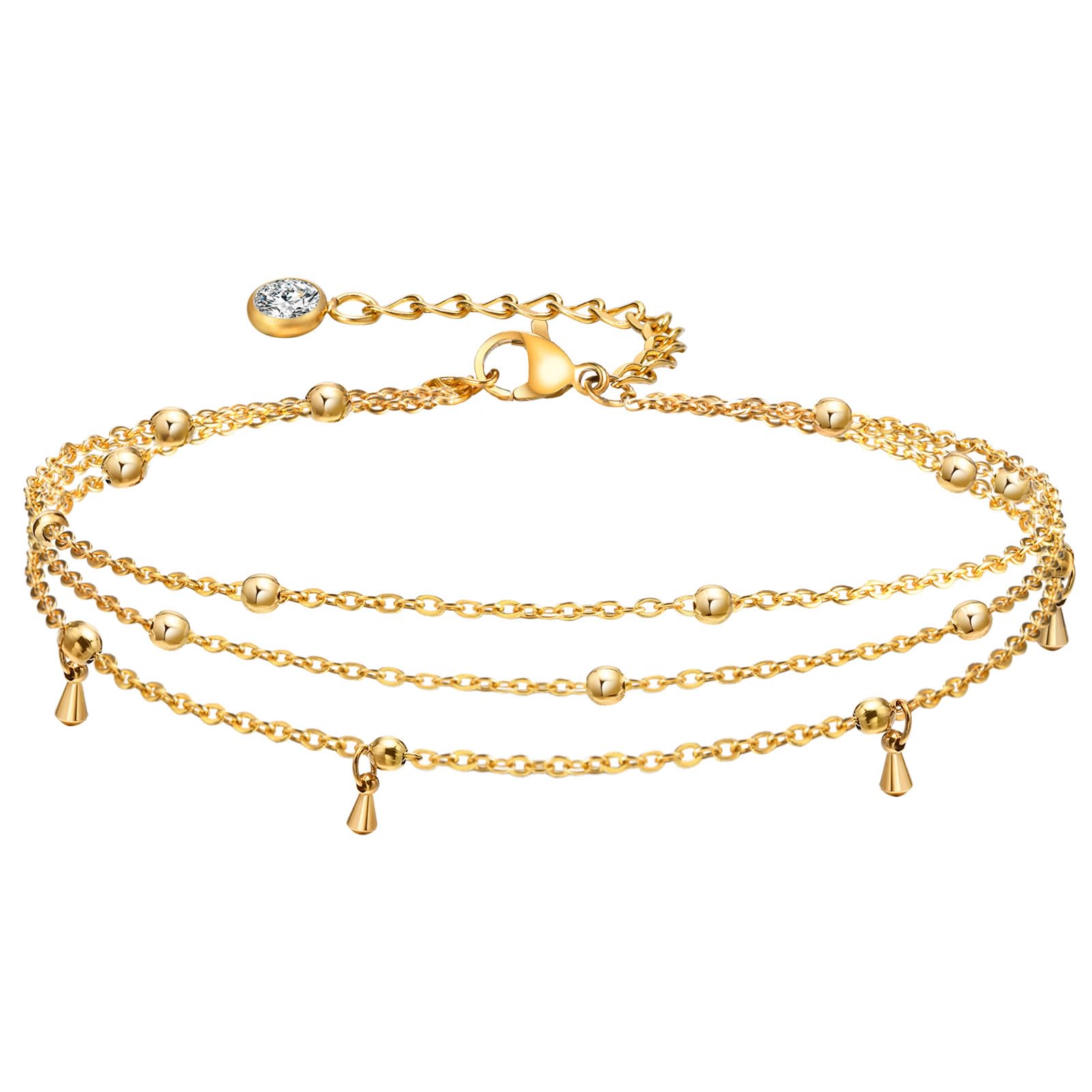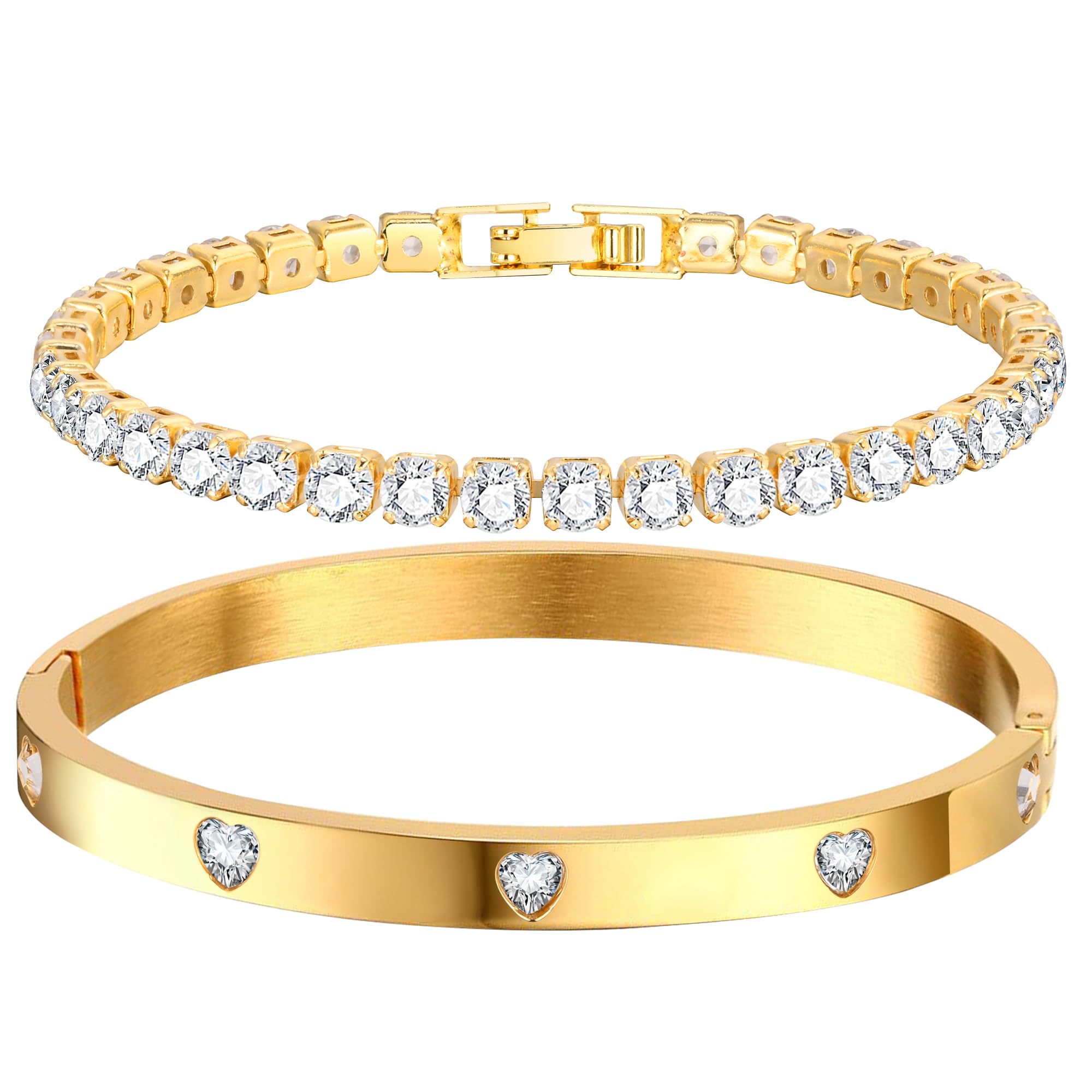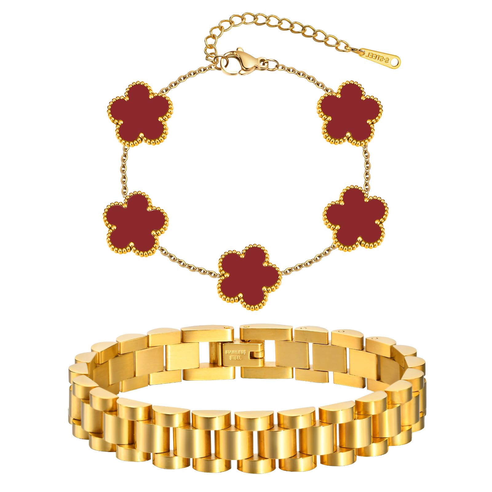 Stackable Gold Floral Bracelets Set , 2pcs 18K Gold Plated Bracelet Non-tarnish,Stainless Steel Link Chain Friendship Bracelet,Watch Band Trendy Jewelry,Christmas Valentines Birthday Gifts for Women