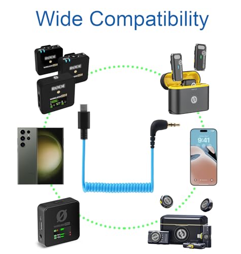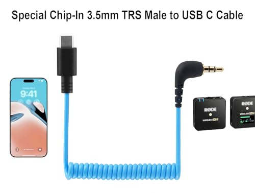 Microphone Adapter for Rode Wireless GO 2, ME, Pro USB C to 3.5mm TRS Mic Cable, for Hollyland Lark M1 / M2 / MAX / 150 / M1 / MAX Duo DAC Coiled Audio Cable for iPhone 15 16 Android
