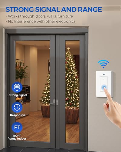 - Stable Range with No WiFi: The wireless outlet switch works through doors and walls up to 100 feet line of sight indoors and 656ft outdoors; no interference with other electronics. The remote switch outlet can be used right out of the box for hassle-free on/off control of your plugged-in devices and appliances without complicated WiFi or smart app setting