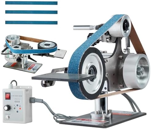 VEVOR Belt Grinder Sander, 30 x 1-Inch Variable Speed Belt Polisher with VFD, 550W Polishing Grinding Machine with 2 Grinding Moulds & 3PCS Sanding Belts for Metalworking, Knife Making