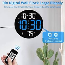 9 IN Large LED Display: The large digital wall clock has a large screen display with high clarity and clear numbers (with up to 3.15 in big digits), it is very easy to read even from a distance and from all angles. Time date day and temperature are displayed on the same screen. The digital clock large display is equipped with a detachable stand that doubles as a desk clock 5 Levels Brightness Dimmer: With 5 levels adjustable brightness display of the LED large digital clock large display, you can easily adjust to a comfortable brightness manually by using the remote control. The alarm clock for heavy sleepers has a built-in auto dimming sensor, which can also automatically adjust the brightness as the light changes, smart to provide you with the needs Dual Alarm Clock with Snooze: You can set two alarms according to your schedule with our alarm clock for teens. The LED wall clock decorative also includes snooze function. When the alarm clock rings, you can press the snooze button to get an additional 5 minutes of snooze time Remote Control: All the settings and operations of the large wall clocks for living room decor can be easily done with the remote control. The large digital wall clock is suitable for bedroom, living room, kitchen, office, classroom, gym, shop, warehouse etc, also the practical gifts for friends, partner and the elderly Tips: The digital wall clock must be plugged in to work, with 78 in USB cord, not include adapter. The battery backup only provides memory function, even if the power is disconnected, time data will not be lost, this way you won’t oversleep or worry about resetting the time when power outages. If you have any question with our wall clocks, simply let us know