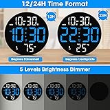CandyHome Digital Wall Clock Large Display with Remote Control, Plug in LED Digital Alarm Clocks, 12/24Hr, Auto Brightness, Date, Week, Temperature, Non-Ticking for Living Room Bedroom Office (Blue)