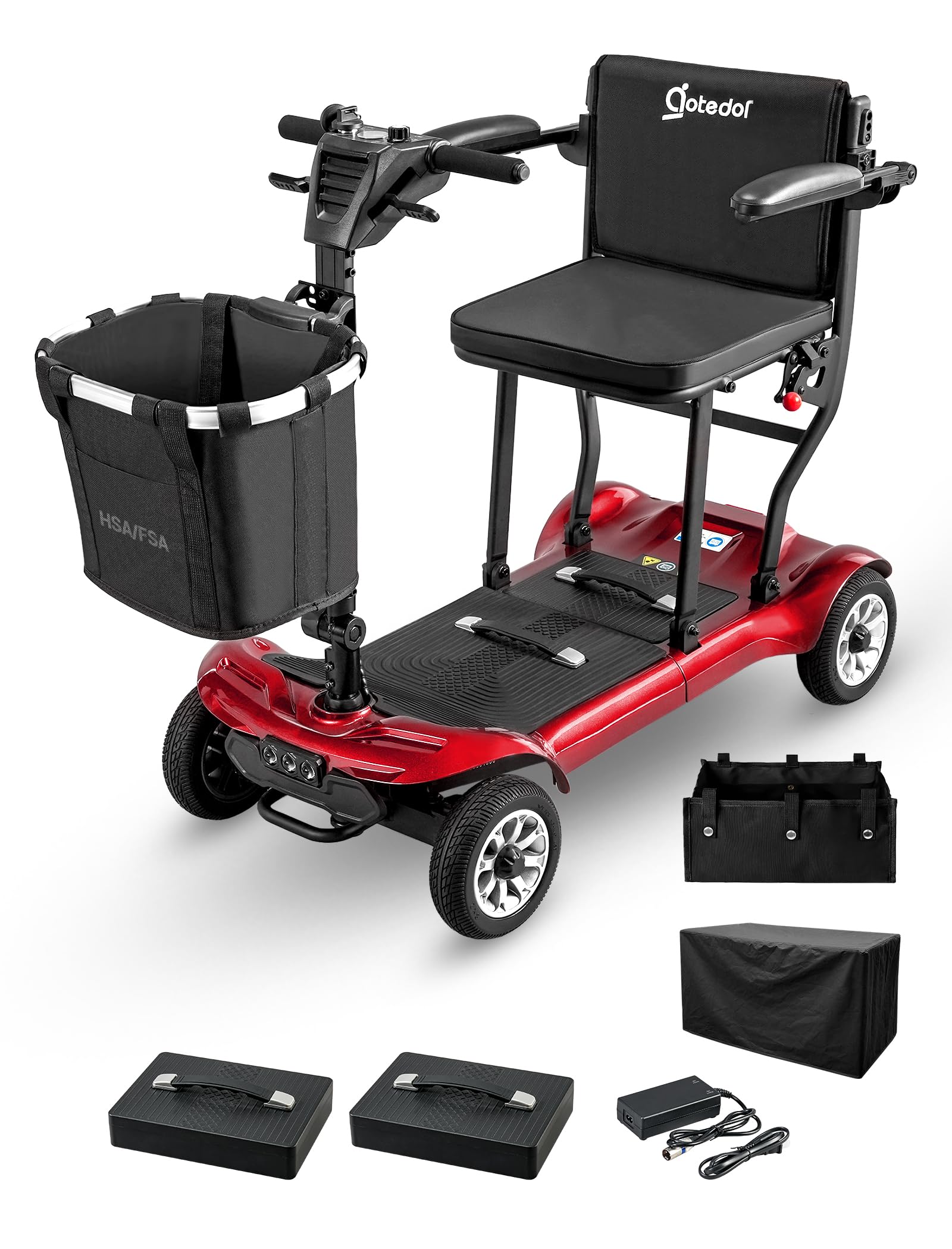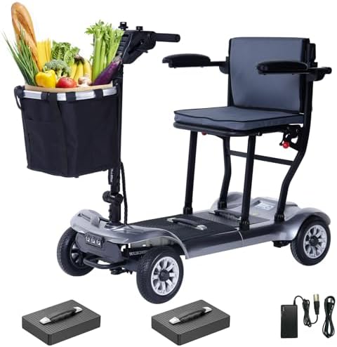 - 🛫𝟐 𝐏ack 𝐁attery and 𝐀irline 𝐀pproved - Our mobility scooters for seniors come with two detachable lithium batteries which can hold up to 18.6 miles on a full charge. Each battery weighs about 4 lbs and can easily be disassembled and assembled. The compact design of this powered mobility scooter allows for easy transportation. The batteries are airline approved, so you can take the airline approved mobility scooter d3 to the airport and enjoy seamless travel adventures. No more stress about distance or complex travel plans – just pure, effortless independence