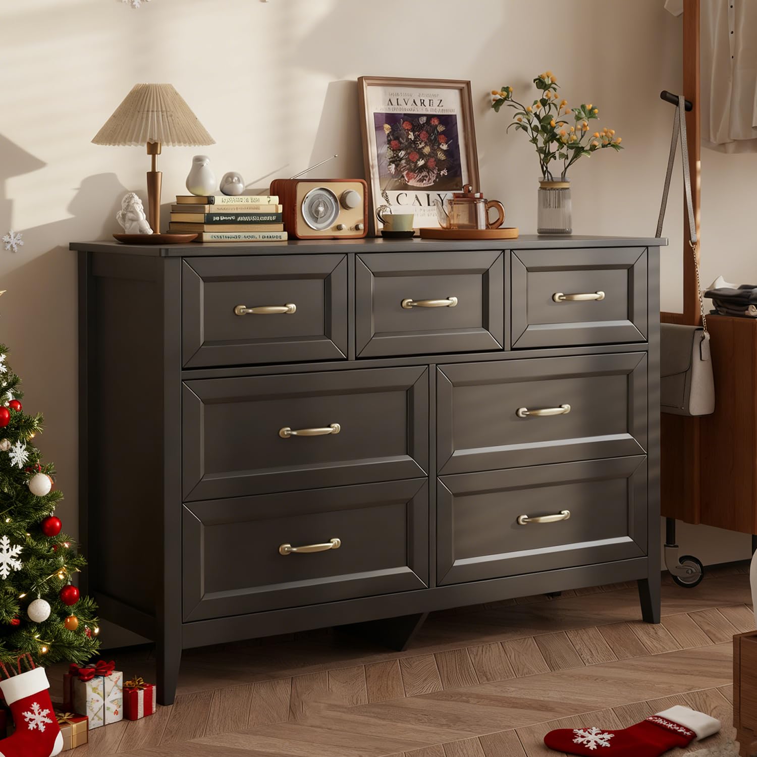 - STURDY & DURABLE CONSTRUCTION:Crafted from wood and finished in a timeless antique white, this dressers & chests of drawers combines durability with classic charm. The black metal handles add a touch of sophistication, while the arched bottom and robust wooden frame provide superior stability. It is also equipped with an anti-tipping device to ensure the safety of your family