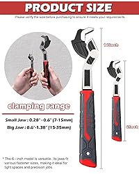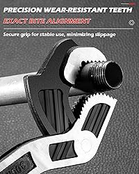 Self-locking Pipe Wrench: The spring tension and three sided tooth design of the multifunctional self-locking pipe wrench can firmly grip most types of fasteners, including hexagonal head, spline head, star and square head nuts, bolts and screws, and even damaged fasteners. This wrench is designed to provide maximum grip and torque, suitable for various pipeline, construction, and mechanical tasks. Premium Materials: The ergonomic handle keeps the user's wrist in a comfortable position to reduce pressure. The wrench is made of chromium vanadium alloy steel, quenched and forged, with a hardness of up to HRC 60, sturdy and durable, and can be used for a long time. Self-locking Design: Built in with self-locking function, the double threaded toothed pliers can firmly grip the pipeline or nut. The special pliers allow the wrench to rotate backwards and reposition, making it non slip and quick to adjust. You don't have to constantly disassemble and replace the appropriate sized wrench. Adjustable Opening: The clamping range of our 6 inch wrench is 7-15mm, and 10 inch is 15-35mm. Widely used for pipes, screws, nuts, etc. Easy to operate with one hand, simple and practical, convenient and efficient, it is a versatile tool for home travel. Multifunctional Pipe Wrench: Each straight pipe wrench has deep groove teeth that lock in place, providing a confident grip on the smooth circular surface around it. Applicable to all home decoration repairs related to pipelines, such as water tank repairs, domestic water pipes, vehicle repairs, etc.