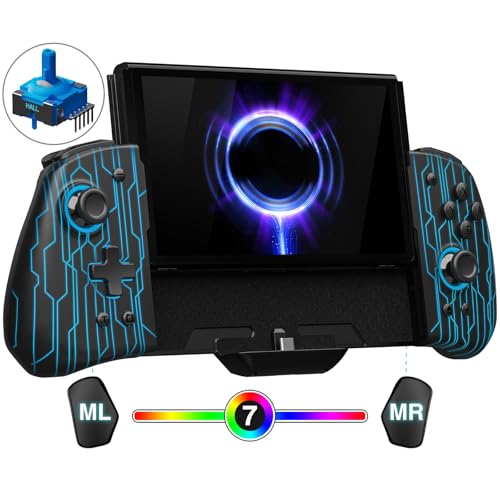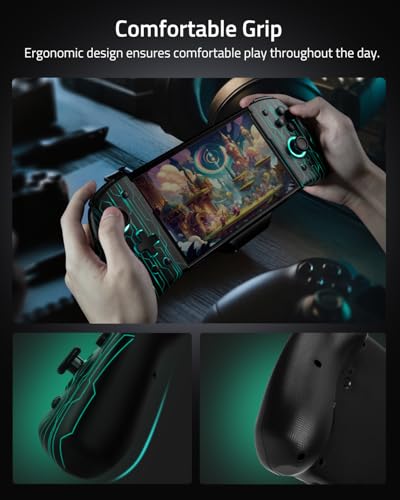 - Hidden Light Display: The customizable switch controllers's vibrant light effects are hidden beneath its exterior, offering 7 colors, 4 brightness levels, and 2 modes. When the LED is on, hidden patterns illuminate your magical gaming nights