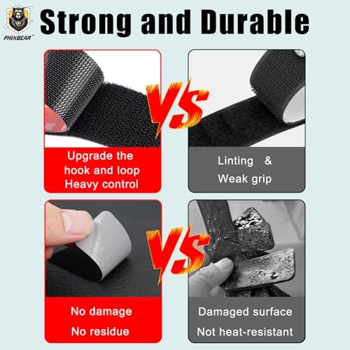 - 【No Residue】The hook and loop tape does not leave any residue on the surface of objects when removed. Due to its high adhesion, it is recommended to use a hairdryer to heat and remove it.