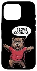 iPhone 16 Pro I Love Coding Bear Graphic Funny Programming Coding Case