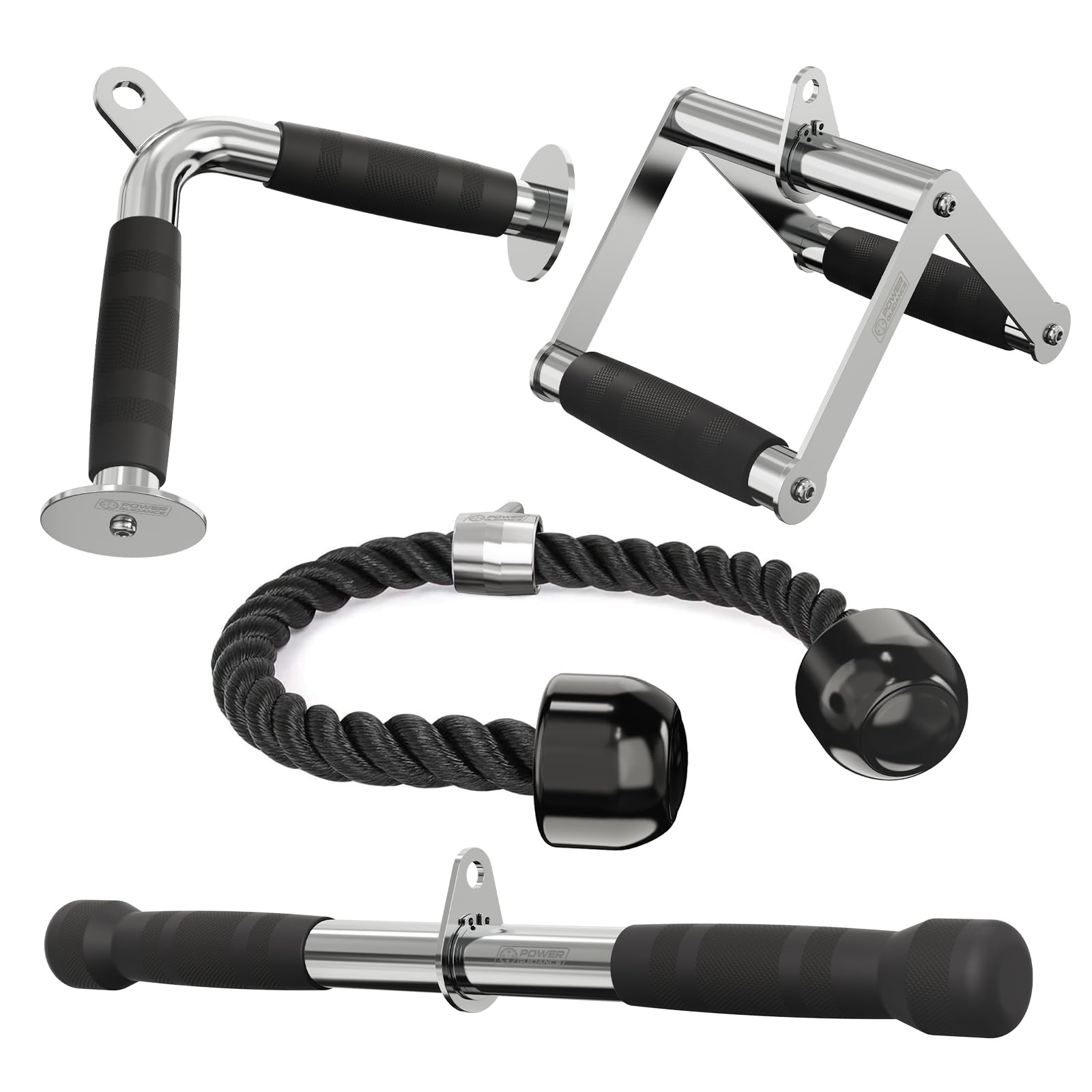 - Get the most out of your cable machine with our high-quality gym attachments! Our V-shaped bar, V handle with rotation, straight rotating bar, and nylon braided tricep rope are all designed to help you isolate each muscle group for maximum results