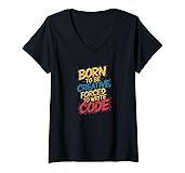 Womens Born to Be Creative, Forced to Write Code - Funny Programmer V-Neck T-Shirt