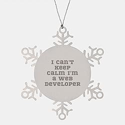- Are you a proud Web Developer or looking for a unique gift for someone who loves coding? Look no further! Our I Can't Keep Calm I'm A Web Developer Snowflake Ornament is the perfect way to celebrate Web Developer pride. Crafted from premium stainless steel, this shatterproof ornament is sturdy and safe. It measures 3.14 inches in diameter. Whether you're a Web Developer yourself or just a fan, this ornament is the ideal gift for any occasion. Make it a thoughtful gift for your coworkers, friends, or family. This unique and humorous ornament is sure to bring a smile to their face. Make it a memorable Christmas gift for your loved ones. Don't miss out and show your appreciation for their work!