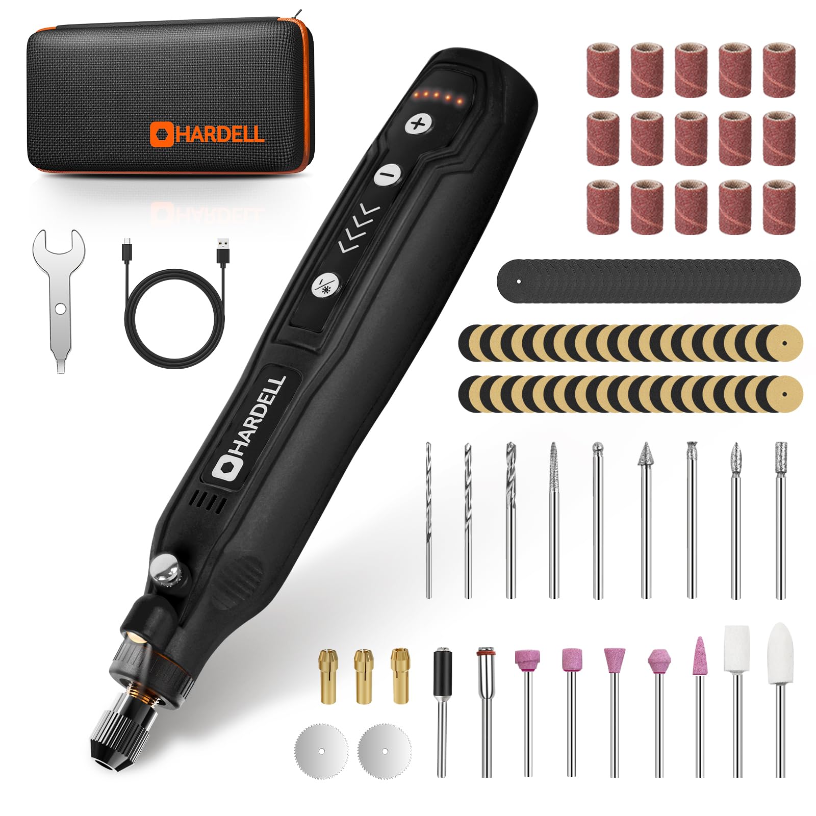 - 【69pcs Rotary Tool Accessories】- The rotary tool accessories kits includes sanding ring 150 mesh, wrench, chuck (1.0/1.6/2.3mm), cutting disc, wool wheel, grinding head, grinding roller, cutting handle , engraving head, drill bit (1.0/1.6/2.3mm) and sandpaper sheet, which are very suitable for grinding, engraving, polishing, cutting, and grinding. Unleash your creativity and take your DIY projects to the next level with the HARDELL complete rotary tool accessory kit.