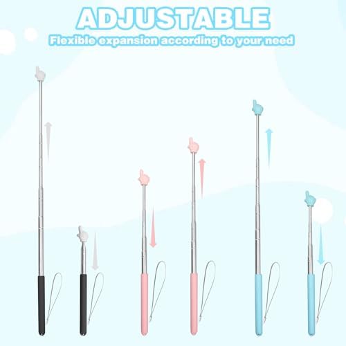 3Pcs Teacher Pointer Finger Telescopic Pointer Stick Hand Pointer with Lanyards, Extendable Pointer Teacher Pointers for Classroom Elementary School Teacher, Classroom Supplies (Black Pink Blue)