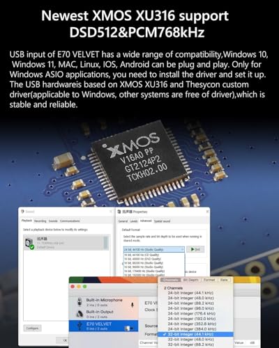 - 【Wide Compatibility with USB XMOS XU316】- The advanced XMOS XU316 USB input supports DSD512 & PCM768kHz and is compatible with Windows, Mac, Linux, iOS, and Android. Only Windows ASIO applications require a driver. Enjoy stable and reliable performance across platforms.