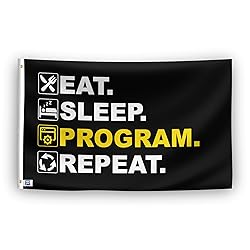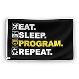 Eat Sleep Program Repeat Flag - 3x5 ft High-Durability Polyester Fade-Resistant, Weatherproof Outdoor/Indoor Banner