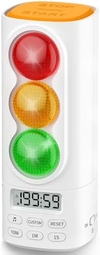 - Visual and Audible Alerts Traffic Light Time: Features a one-touch start/stop button, LCD display, and dedicated settings for time, alerts, and reset. Adjustable volume with 4 alert options (gentle beep, chime, buzzer, melody). Suitable for classrooms, kitchens, quiet spaces, and activities like cooking, fitness, or time management