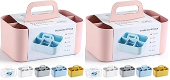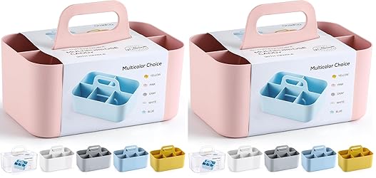 Multiuse Caddy Organizer with Handle - Stackable Plastic Bin Basket - Divided Storage Tote Holder for Art Craft Supplies, Makeup, Bathroom, Shower, Cleaning, Kitchen, Office, Dorm, Desktop - Pink