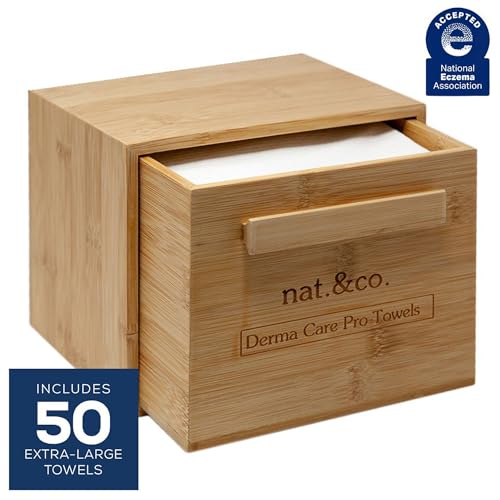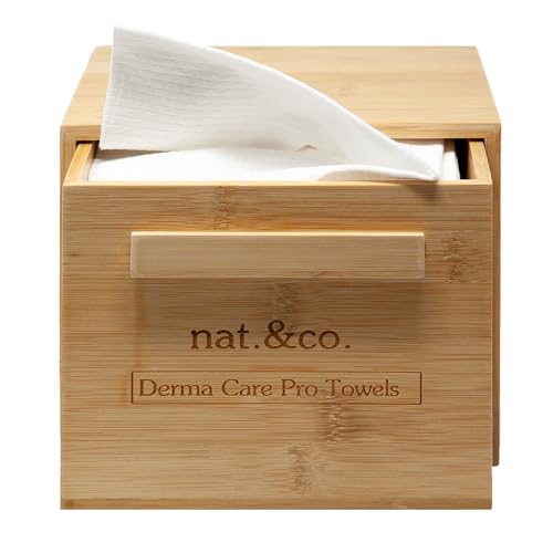 Nat.&Co. Derma Care Pro Deluxe Bamboo Box with Drawer - Includes 50 XL Disposable Face Towels - USDA Certified, National Eczema Seal Approved, Biodegradable Towels for Skincare and Makeup Removal
