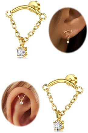 2Pcs Helix Earrings Cartilage Earring Helix jewelry Stud Earrings For Women Flat Back Earrings Cartilage jewelry Screw Back Earrings For Women
