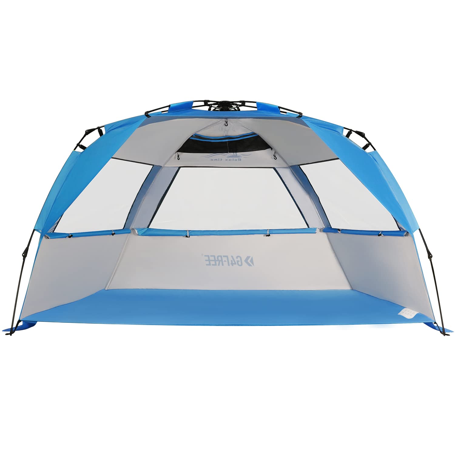 - Compact and Portable: 8×4.5ft beach canopy suitable for 2-3 people, enough space to start a summer sunshine journey with your family and friends. Weigh about 6 pounds, comes with a portable carrying bag easy to carry. Our beach canopy comes with a built-in ground cloth, so you will no longer need to carry an additional blanket for the trip. The beach tent sun shelter is not only suitable for the seaside, but you can also use in the backyard or outdoor while camping.