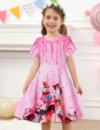 ALISISTER Girls Dresses Little Kids Short Sleeve Casual Dress for 4-9 Years