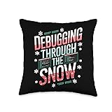 Developer Debugging Through The Snow Christmas Throw Pillow
