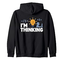 - Show off your witty side with this clever design designed for programmers. Featuring the phrase I'm Thinking beneath a loading icon, this design captures the humor and patience often needed in coding. Ideal for software developers and tech enthusiasts, it's perfect for casual wear, coding meetups, or hackathons