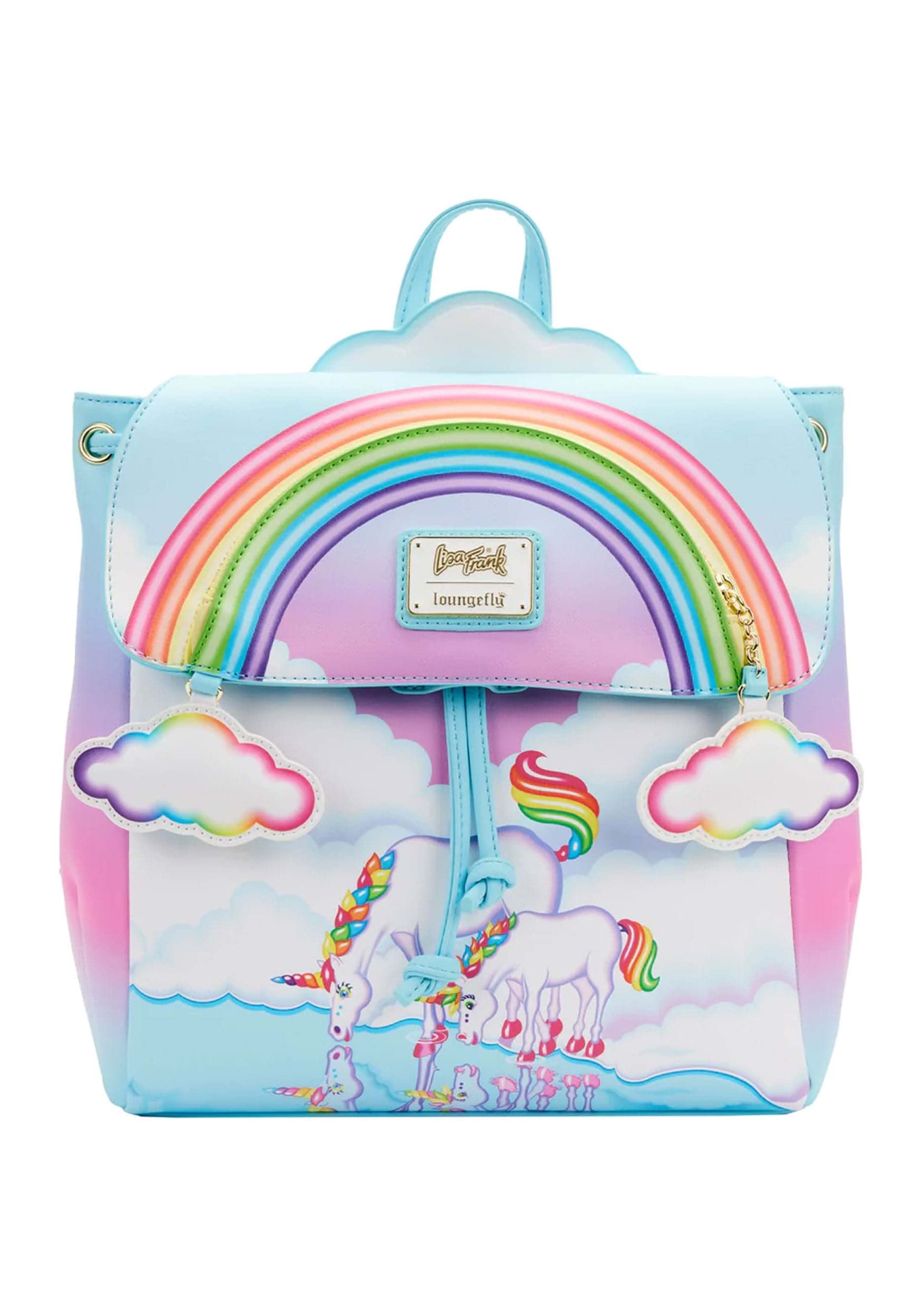 Up, up, and away! Adventure awaits! This full-size bag is inspired by Disney-Pixar's Up. The front of the bag features an all-over print of clouds in a clear sky. The front pocket showcases Carl's house, with an applique of balloons rising above it. Check the side pockets to spot some of your favorite characters. Whether you're adventuring just for fun or working toward your next Wilderness badge, this bag is the perfect companion.