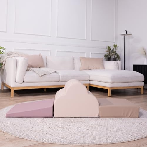 FDP SoftScape Cloud Play Climber, Indoor Active Play Structure for Toddlers and Kids, Safe Soft Foam for Crawling and Sliding (3-Piece Set) - Teddy