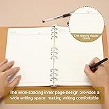 Specification: Color:Blue; Material: PU Leather, 80GSM Paper; Cover Size: 210 x 273 mm /8.3 x 10.7Inch (L*W); Inner Page size: 250 x 172 mm/9.8 x 6.8Inch (L*W); Number of Sheets: 96 Sheets; Packing List: 1Pcs x Refillable Leather Notebook The Refillable Leather Notebook is good for diverse occasions, from meeting notes to write down daily plans. Combines professionalism and elegance, making a suitable choice for your daily office life and meeting records, business notes, study notes, personal diaries Advantage: These refillable notebooks use durable paper that prevent ink seepage and use a wide line spacing of the inner pages design, giving you more room to write, providing a smooth and comfortable writing experience.These refillable notebooks are covered in business-style leather that is both waterproof and durable. The silky hard leather texture makes your daily use experience feel more comfortable Instruction: Adopts a loose-leaf design, which can be detached freely, making it convenient to remove or replenish paper at any time. When changing the inner pages, Press the patches at both ends to open the metal ring and insert the replacement paper. And then close the metal rings to use NOTE: Please confirm the size before purchasing