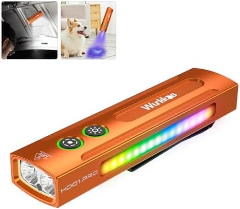 Wurkkos HD01PRO UV Flashlight with UV Light&White LED Combo,Led Flashlight 1200Lumens Flat Flashlight with RGB Light,Rechargeable EDC Flashlight,Pocket Light for Emergency,Pet Urine Detection(Orange)