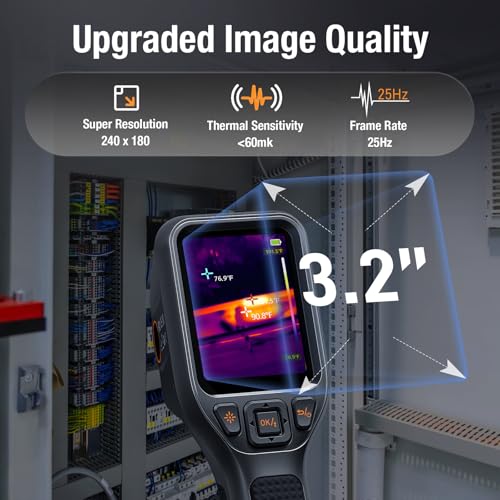 - Enhances Thermal Image: Teslong TTM120S 3.2-inch HD screen 120 x 90 IR resolution thermal camera, Using super-resolution technology enhances thermal image clarity from 120 x 90 to 240 × 180, and with 25Hz frame refresh rate, thermal imaging camera provides clear and smooth images, making it ideal for industrial maintenance, electrical inspections, building diagnostics, and HVAC inspections