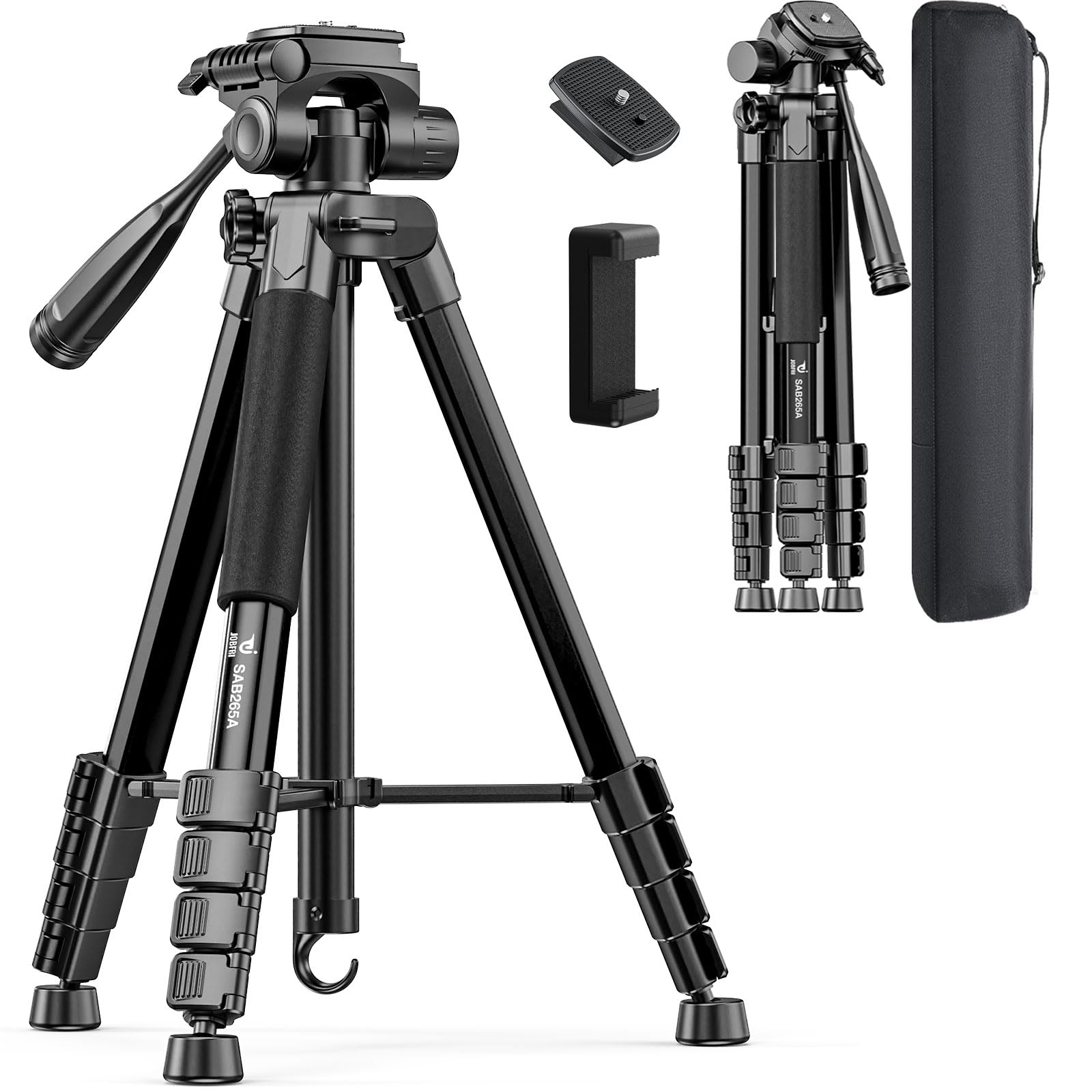 73" Camera Tripod Stand, Aluminum Tripod with Phone Holder, Travel Bag, Compatible with GoPro/DSLR/Cell Phone/Camcorder, Max Load 8.8LB (Black)