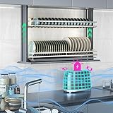 AngelParticle Smart Dish Drying Rack - Touch Switch Pull Down Shelf for Upper Cabinets 24", 2-Tier Sensor LED Lights Wall Mounted Cabinet Organizer