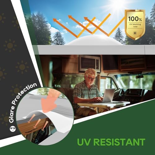 - UV Protected: Our skylight is designed to block 100% of UV rays, ensuring superior protection for you and your RV interior space. With 0% UV transmission, it effectively prevents sun damage, fading, and reduces heat buildup. Whether you’re parked under direct sunlight or on the move, this skylight helps maintain a cooler, safer, and more comfortable environment.