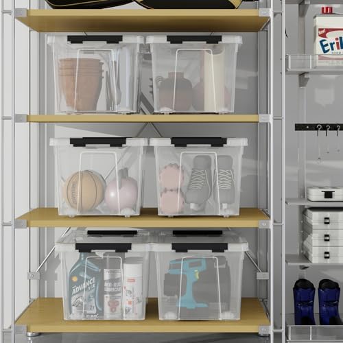 Plastic Storage Containers with Secure Latching Lids, Stackable Organization Bins, Clear, 22 Quart, Set of 6