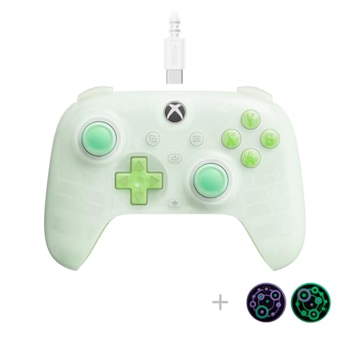 8Bitdo Ultimate Mini Wired Controller with RGB Lighting Fire Ring, Hall Effect Joysticks and Triggers, for Xbox Series X|S, Xbox One, Windows 10/11 - Officially Licensed (Translucent Green)