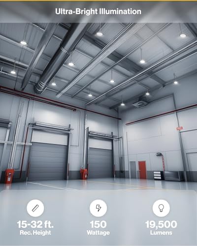 Sunco 80 Pack UFO LED High Bay Light, 150W, 19500 Lumens, 5000k Ultra Bright Commercial Shop Lights for Warehouse, Factory, Workshop, Garage & Barn, Ceiling Mount, Plug & Play, 120V, UL