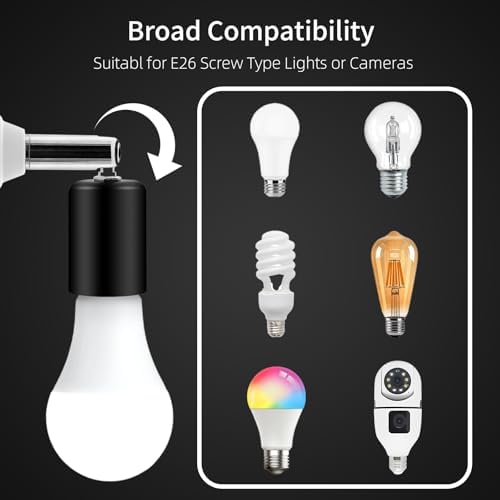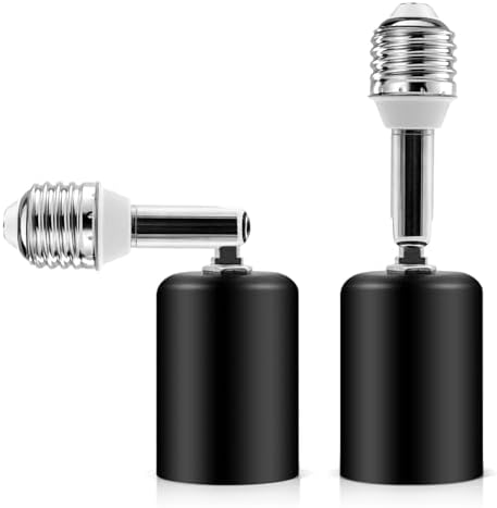 2 PCS Ceramic & Metal E26 Light Socket Extender Black - 5.5" Length,90° Vertical & 360° Horizontal Adjustable, 110V-240V, 150W Max, Fire-Resistant, Light Socket Extender for E26 Light Bulb
