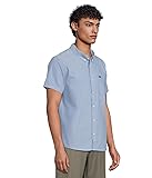 Stretch Oxford SS Woven Slim Fit Button down collar Scalloped hem Single chest pocket with RVCA solo label at pocket hem