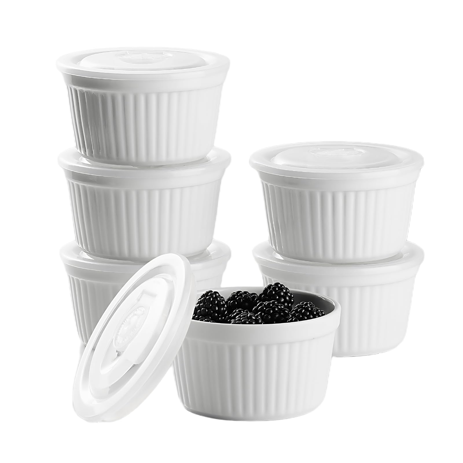 - Keep Fresh & Stackable: Each ramekins oven safe having a lid, provides coverage and a secure seal for your food to keep it fresh, it is a definite bonus for storing leftovers or prepped ingredients in the fridge. The ramiken with covers can perfectly stack and no more worry about awkward to store, breakage and glaze abrasion.