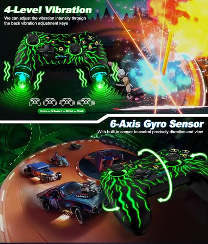 - 【VIBRATE & TURBO FUNCTION】 The controller for nintendo switch has dual vibration motors with 4-level precise vibration: none, weak, medium and strong which provide you excellent vibration feedback to enhance the game immersion. There are 3 adjustable speed: 5/s, 12/s or 20/s. You can customize the TURBO button, A/B/X/Y/L/ZL/R/ZR all buttons can be set to TURBO, take your game sessions up a notch with the switch Controller because of the customized TURBO. ( Only switch device has six-axis)