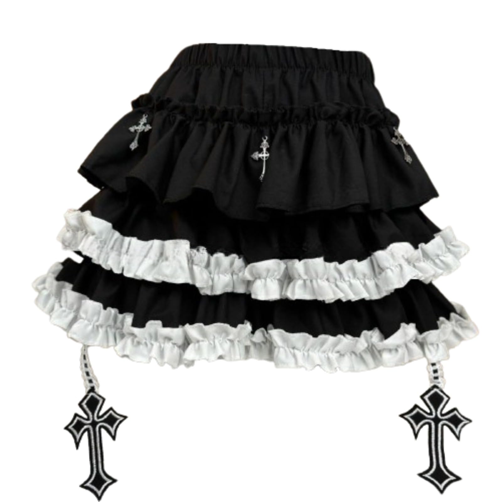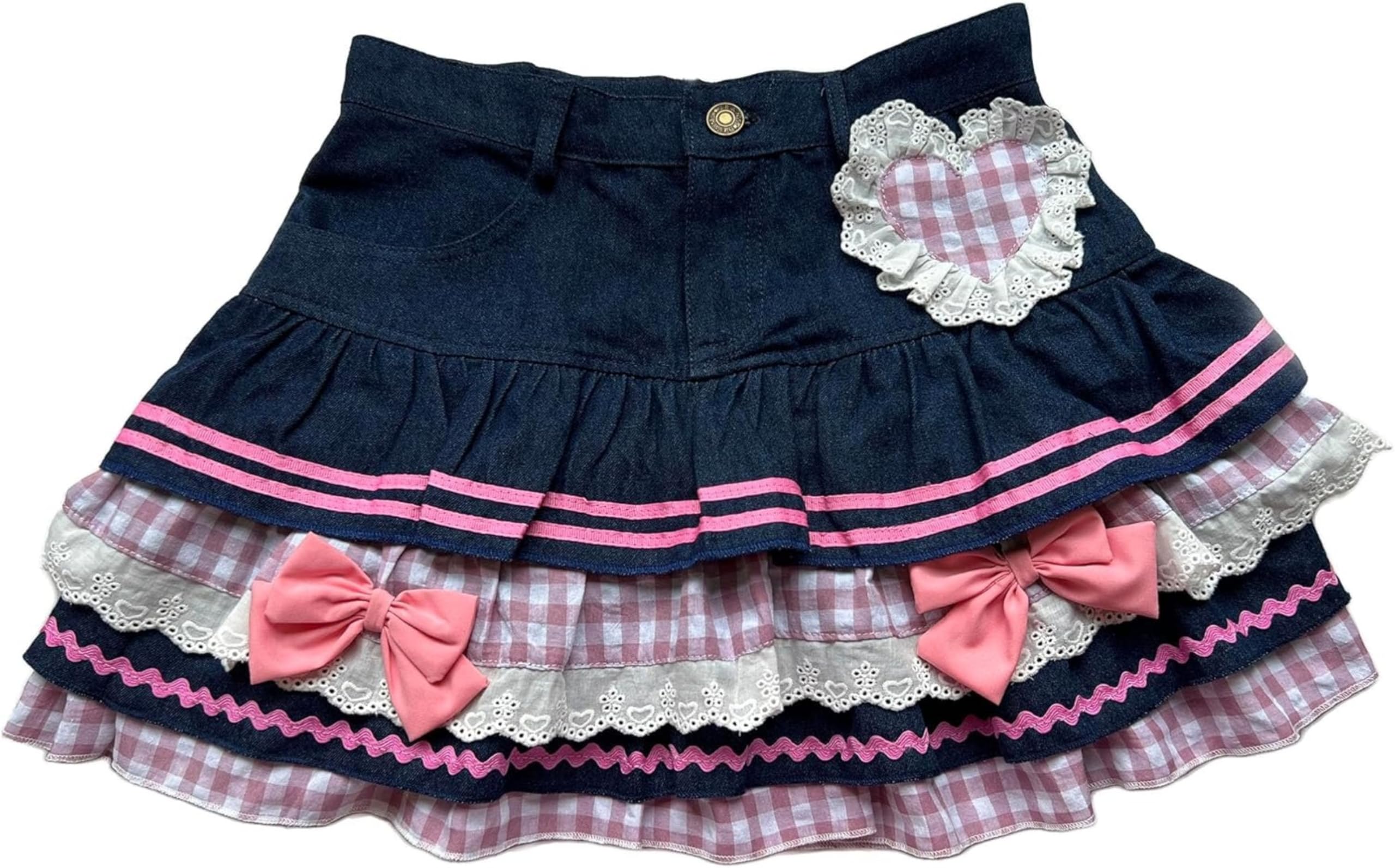 Pokn Y2K Lolita Fashion Cake Skirt - Short Mini Skirt with Bow
