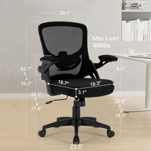 Office Chair Ergonomic, Comfy Desk Chair with Flip up Arms, Mesh Computer Chair with Adjustable Lumbar Support, Home Office Chairs 300 Lbs Capacity
