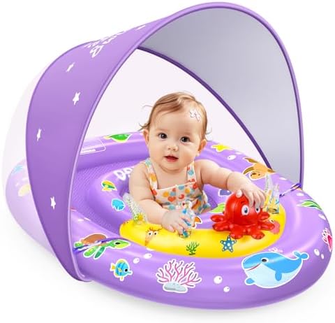 - UPF 50+ Sun Protection: This baby pool float blocks harmful UV rays with its 0-120° adjustable canopy, protecting your baby’s delicate skin from sunburn during pool, beach, or lake swims. Perfect for infants 6-36 months and toddlers under 50 lbs, it lets your little one enjoy summer fun safely with this parent-approved toddler swim float