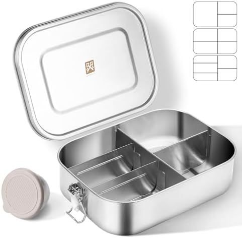 - 304 HIGH-QUALITY FOOD GRADE STAINLESS STEEL: All lunch boxes are made of thickened 304 stainless steel, free of plastic and BPA, healthy and sturdy. This eco-friendly stainless steel bento box provides a healthy and reusable option, replacing disposable plastic containers and making it a wise choice for any meal